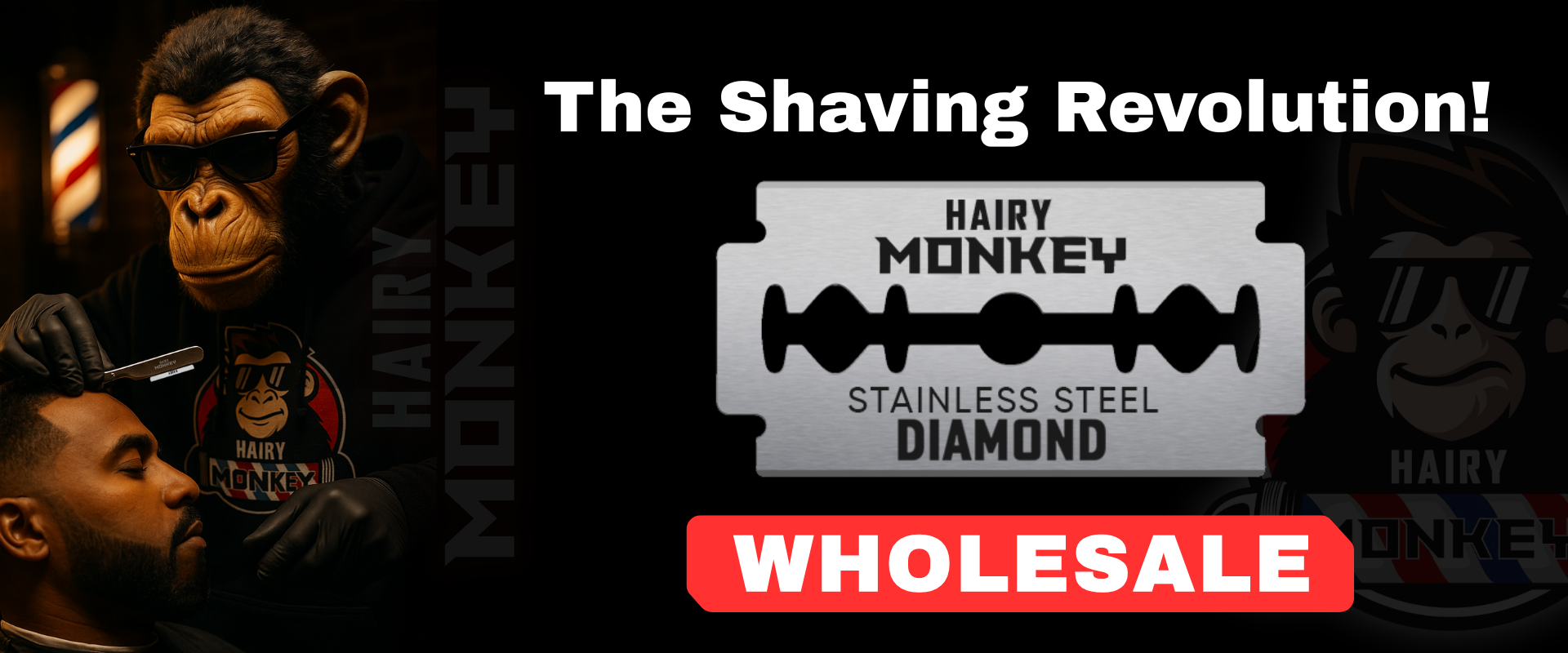 Hairy Monkey Pro supplies professional razor blades engineered for sharpness, durability, and precision, trusted by barbers and distributors worldwide. Our wholesale program offers exclusive pricing, fast delivery, and consistent quality on every pack. Cut sharper, work smarter, and keep your clients looking their best with Hairy Monkey Diamond blades.